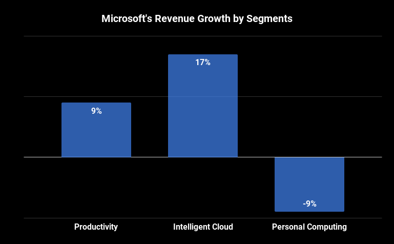 🔸Personal computing: its negative growth at -9% mostly comes from the declining sale of Windows operating systems. It is no surprise as more people are opting for mobile phones or tablets to go onlines.