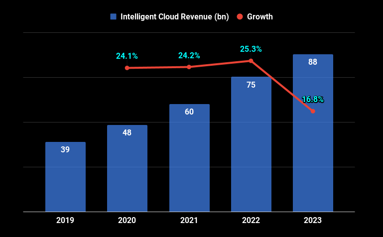 Intelligent cloud business has been growing at an average 22.6% in the past 5 years from 2019 to 2023, a truly remarkable achievement.